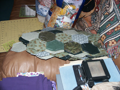 Work in progress: This one is my first truly scrappy quilt. I literally hit the bucket to find anything that would make a 5.5 inch square. It's mostly random, but I still tried to make sure there were no similar squares too close to each other. It is really going together fast!!!